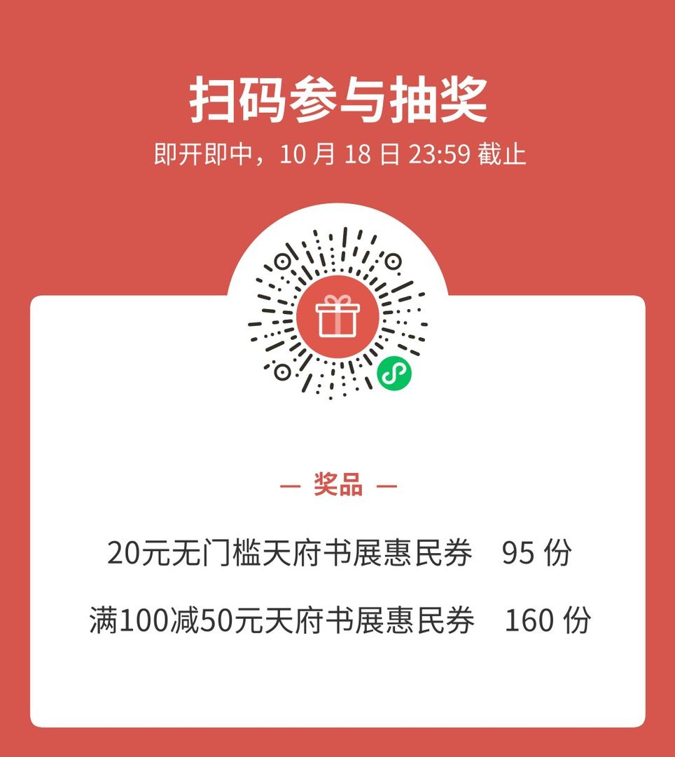 为回馈封面新闻读者对天府书展的热爱,封面新闻今年继续联合新华文轩,向读者赠送天府书展购书惠民券(分为线上券和线下券,均为电子券,兑现方式和使用渠道不同)若干。
